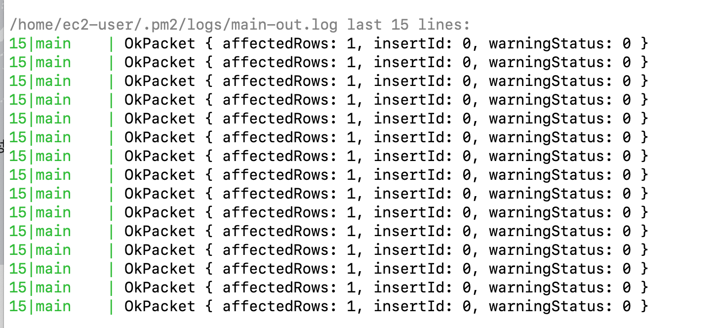 pm2 log에 지속적으로 OkPacket 로그가 출력되는 것을 확인했다.